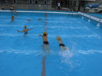 2年生になってバタ足やクロールに挑戦し,1年生の時より少しずつ泳げるようになりました。夏休みにも水泳学習があります。泳力アップを目指して頑張りましょう。