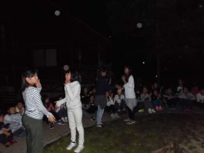 今日のキャンプファイアは何かが違います。よく考えてみると「司会いいひんやん!」