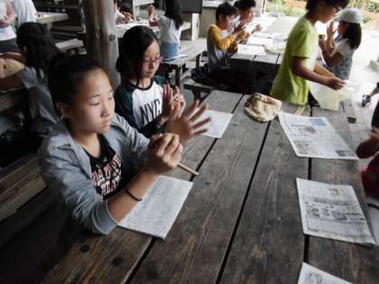 空気が粘土の中には入っていると焼いたときに割れてしまうので,ひび割れしないようにすばやく慎重に作っていきます。