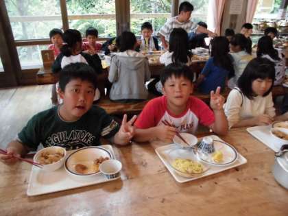 山の家での最後の食事。昼ご飯をガッツリ食べました。