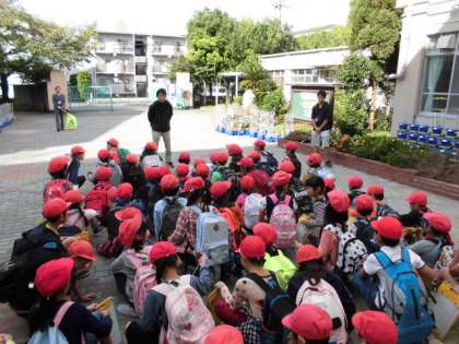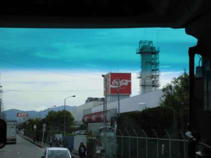 コーラ工場に向かって出発します。バスに乗り込んで・・・。