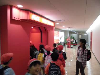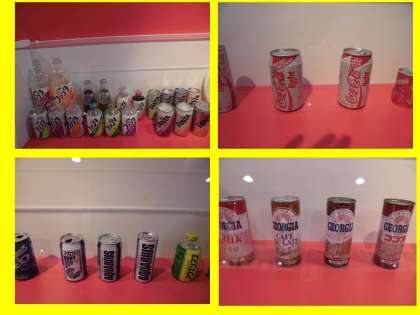 タイムトンネルをくぐり,タイムスリップ。懐かしいジュース缶がたくさん展示してあります。工場内は企業秘密のため撮影できませんでした。残念・・・。