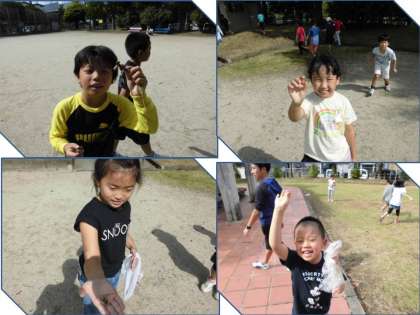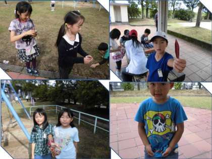 また,赤色や黄色に色づいた葉っぱもたくさん落ちていて,みんなお気に入りの落ち葉を持ち帰りました。