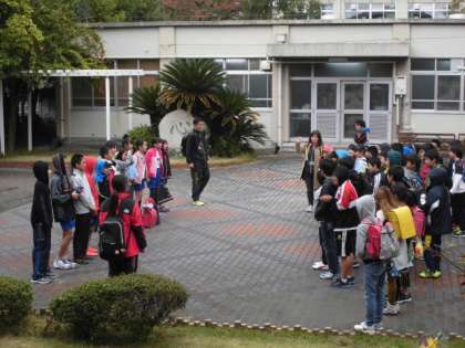 今日は大文字駅伝大会の支部予選会です。出場する6年生の代表児童がみんなに見送られ,意気揚々と川岡東小学校を出発しました。最後までしっかりがんばってほしいと思います。