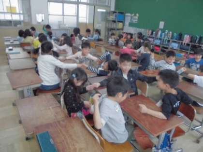 今日はそんな2年生のために,学校にはどんな教室があるのか思い出す時間にしました。その後少し時間があまったので,『キャッチ』という遊びをしました。1年生との顔合せの時にできるといいですね。