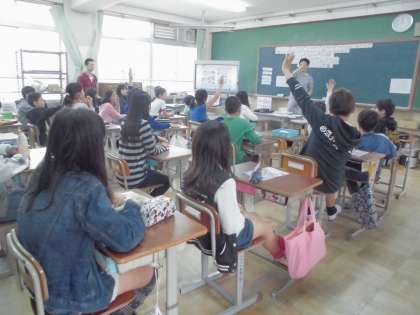 6年生は慣れた様子で答えていました。ただ今日は4時間目ということもあり,『I'm hungry.』という子がとても多かったです。給食まであと少し。がんばれ!!