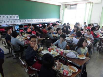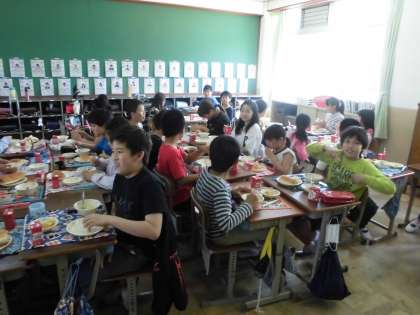 5年生の給食時間はいつも笑顔が満開です。今日もおいしい給食を食べて,みなさん満足なご様子。みんながにこにこ笑っている教室はさながら・・・