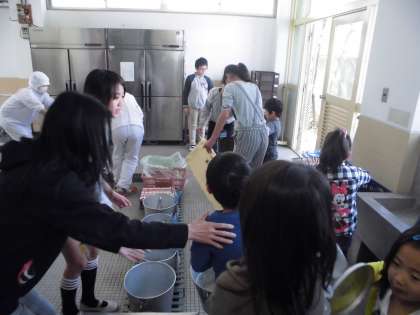 委員会活動が始まりました。給食委員会は毎日,立ち当番をします。今日の当番は6年2組。きれいに片づけができるように,声かけをしながら当番をしていました。さすが6年生!