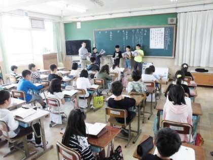 『きつつきの商売』の音読発表をしました。グループで役割を決めて協力して発表しました。深い森の中で繰り広げられる,きつつきと動物たちの楽しいやり取りを見事にまで表現していました。