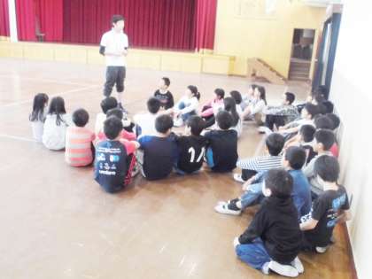 昼休みに部活動の説明会が行われました。入部希望者は,入部しようと考えている部活動の説明を真剣に聞いていました。