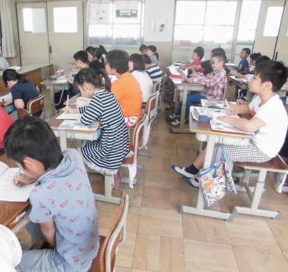 一つの文に音読みと訓読みを入れるのは少し難しかったようですが,一生懸命考えていました。
