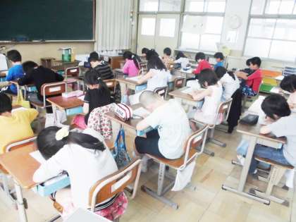 昨日の1組に続き2組の書写が始まりました。2組も1組と同様,集中して書きました。『今までの人生で一番丁寧な字を書こう』というめあてを持って取り組みました。さあ,その出来は?今日も自分の字に得点をつけました。