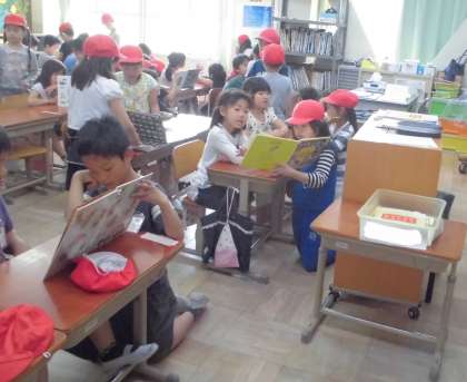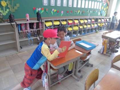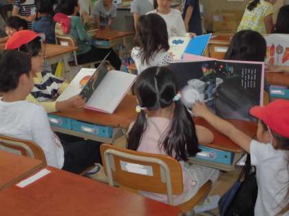 1年生を教室へ連れていってあげて,2年生が本の読み聞かせをしてあげていました。1年前はしてもらう側だった2年生。1年たってこんなに大きく成長したんですね。