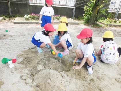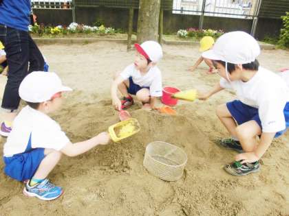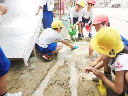 山を作ったり,川を作って水を流したり,お城を作ったりと自分のつくりたいものを作っていきました。手で土や砂の感触をしっかりと味わって学習をすることができました。