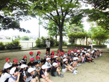 五社神社で学校探険の成功をお願いした2年生一行が,次に向かった先は大般若公園。2年生が選ぶ『この公園が好き!ランキング』で常にベスト5に入る公園です。
