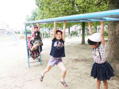 ここに来るまでたくさん歩いた2年生。疲れがピークに達しようとしていましたが,遊び始めると疲れはどこへやら・・・。すべり台やうんてい,ブランコなどで遊んで大般若公園を満喫したのでした。