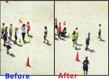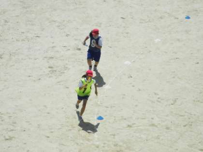 2組のリレーでは,みんなが気持ちを一つにバトンをつないでいる姿が印象的でした。そんな姿に心を打たれた世良先生も飛び入り参加。先生も子ども達とバトンをつなぎました。(かろうじて)