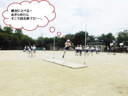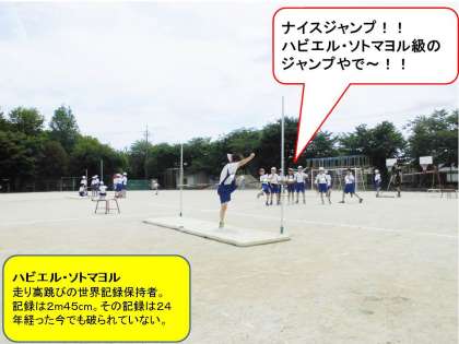 初めての走り高とびに挑戦しました。片足でのふみきりや跳んだあとにぬき足などがとても難しかったのですが,何度も跳んでいくうちに少しずつ慣れてきて上手に跳べるようになりました。