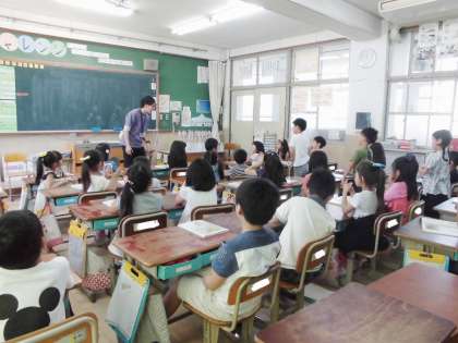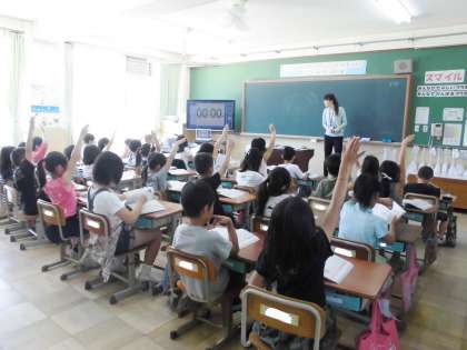 2年生の教室をのぞくと,子ども達が手をあげてしっかりと自分の意見を言って学習に取り組んでいました。