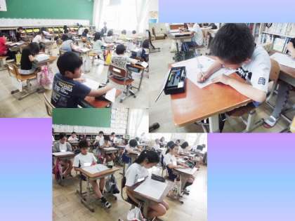 今年度初めての漢字名人大会がありました。去年の学年の漢字の復習テストをした学年も多かったようです。1年生は漢字をまだ習っていないので,今日はひらがな名人大会でした。