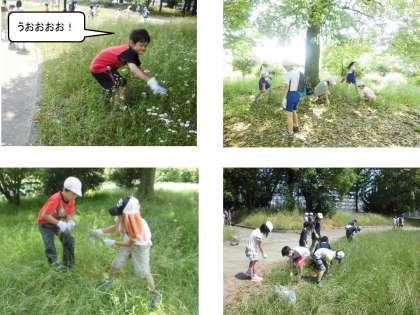 今日は5月30日。530(ごみぜろ)ということで,川岡東小学校でもごみ0の取組をしました。各学年が運動場,校舎裏,牛ケ瀬公園に分かれてそうじに取りかかりました。今日は最高気温が34度になるかもしれないという暑い日でしたが,子ども達は一生懸命にがんばりました。