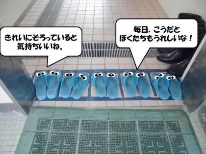 トイレのスリッパがきれいに並んでいると,次にはく人が気持ちいいですね。