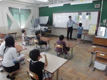 写真をヒントに「誰が」「どうした」といった言葉を選び,文章を作りました。