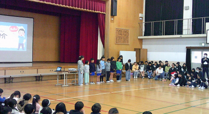 児童集会で、3・4年生の後期の代表委員の人たちの紹介がありました。