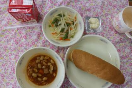 今日は「ポークビーンズ」「じゃがいものソテー」「チーズ」でした。