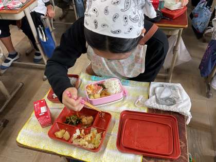 自分のお弁当箱にうつしかえる作業は思ったよりも大変そうでした。