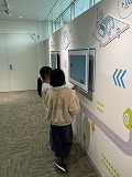 展示・体験学習では、車の生産工程についてのパネルを見て学習したり
