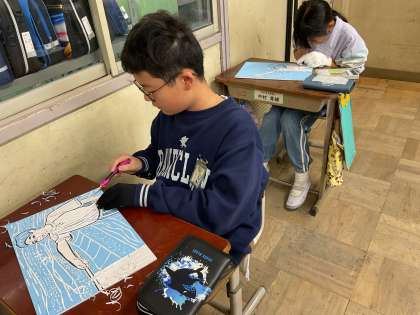 初めての面彫りに戸惑う子もいますが、一生懸命彫っています!