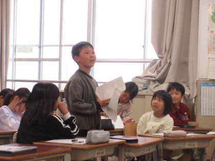 毎週2回行っているみんな遊び。最近は「おにごっこ」と「ドッジボール」をすることが多いので、みんなで意見を出し合って、遊びの種類を増やすことにしました。「出し合う」では、20種類以上の遊びが挙がり、2学期中にする遊びを6つ決めるのに活発に意見を出し合いました。明日はリレーをします。楽しみです!