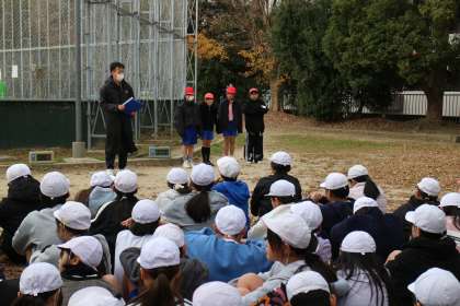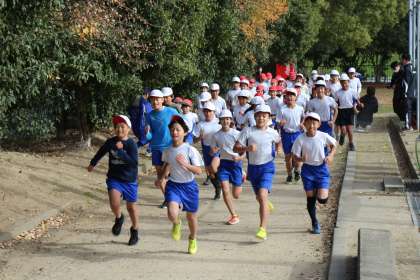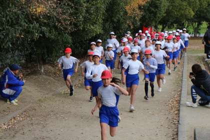 時雨れる天気のなか、高学年のマラソン大会が牛ケ瀬公園でありました。