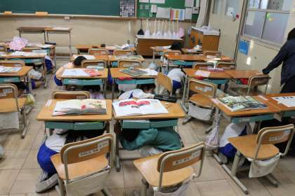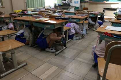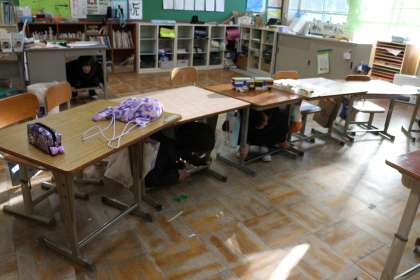 大慌てすることなく、机の下に頭を入れる行動が出来ていました。