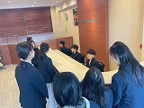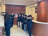 丁寧なお辞儀や姿勢、態度について学び、実際に銀行窓口での業務を体験しました。