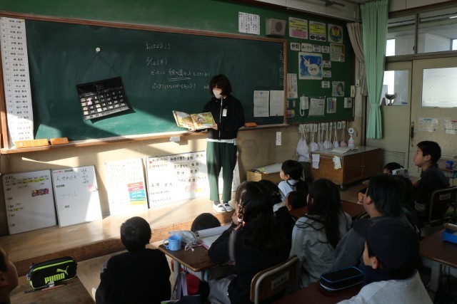 まずは、図書委員による読み聞かせがありました。上級生が読んでくれて、子どもたちは嬉しそうに聞いていました。