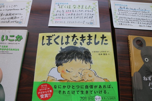 ふれあいロードに、先生からのおすすめの本が並んでいます。