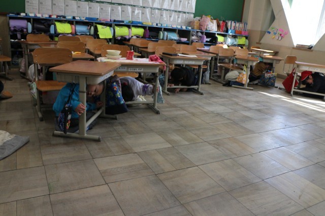今日はシェイクアウト訓練を昼休み中に行いました。