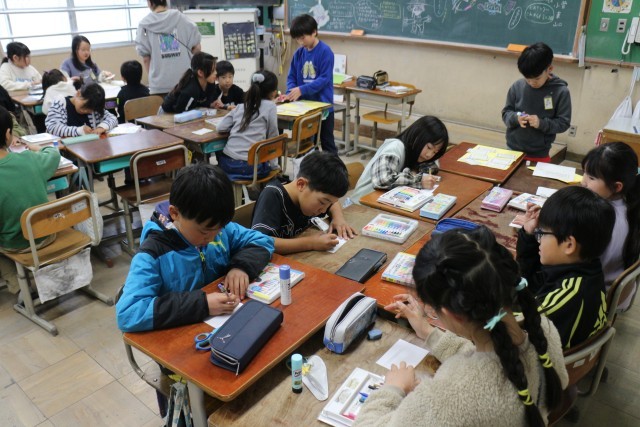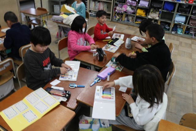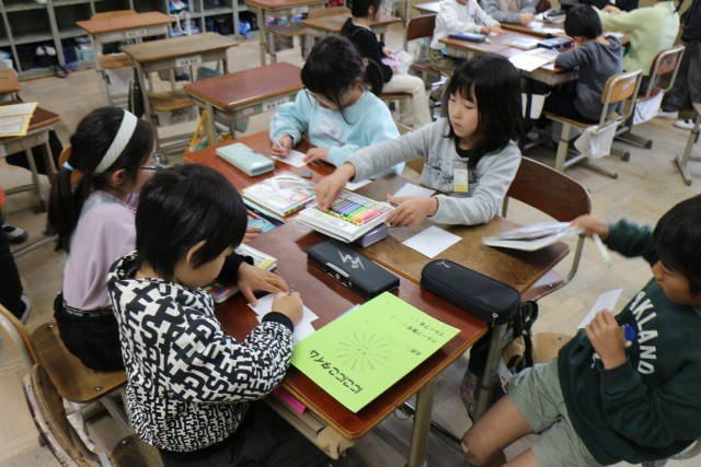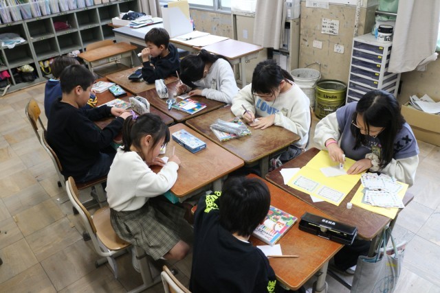 どのグループも一緒に遊んでくれた6年生のために、心を込めてカードやイラストを描いていました。