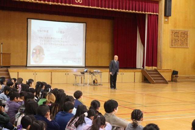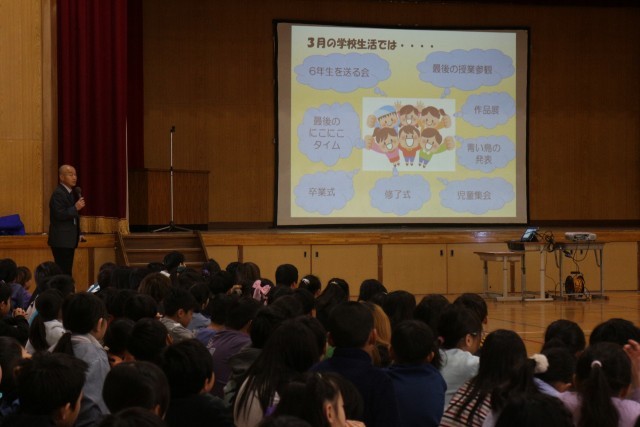 校長先生から、今年度最後の月、どのようなしめくくりにするのかについてお話がありました。