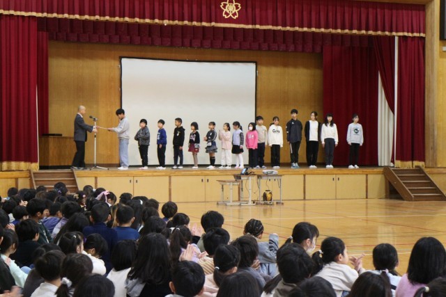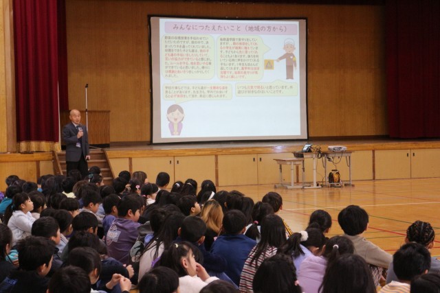 先日、地域の方が学校に集まって色々なお話をした時のことにもふれ、良くなってきていることと、もう少し頑張ってほしいことについて子どもたちに伝えました。
