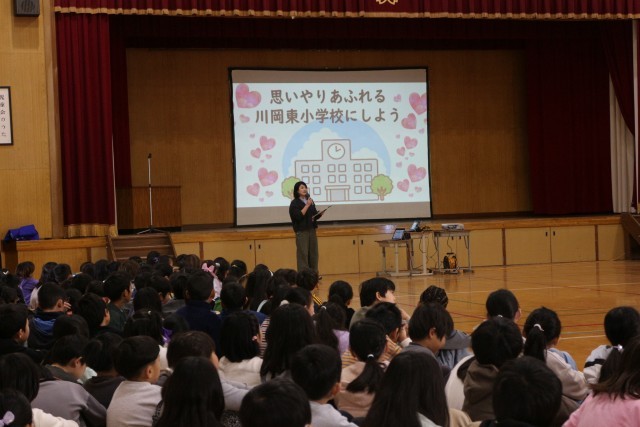 また、思いやりの日についてもふりかえりがありました。「自分も仲間も大切にする子になろう」と川岡東小学校では思いやりの日を設定しています。思いやりあふれる学校にするために、取り組んだ1年でした。