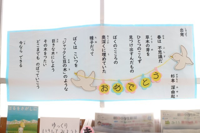 図書館の前に素敵な詩が飾られていました。