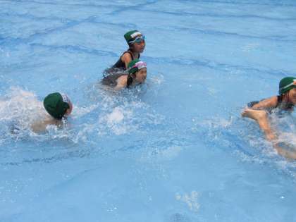 低水位での水泳学習が始まっています。