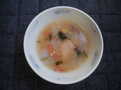 今日の給食は,胚芽米ごはん,トマトだご汁,きつねどんぶりの具,牛乳 でした。