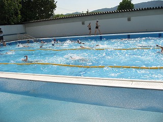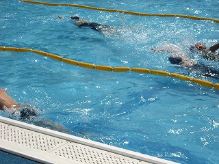 体育の「プール学習」が始まりました。5年生では,クロール,平泳ぎなどの泳ぎを,手と足の動きに呼吸を合わせながら,続けて長く泳ぐことを目指します。