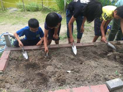 今日はかしのみ学級の2年、3年、6年の有志で畑を耕しました。