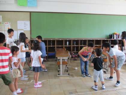 ペアの1年生の手をひいて歩く6年生の姿や,今年も来てくれた保育園児に優しくやり方を教える係の子の姿が見られ,うれしいひと時となりました。
