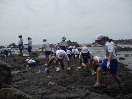 浜では、小さなかにやヤドカリ、魚、貝などの生き物を見ることができました。